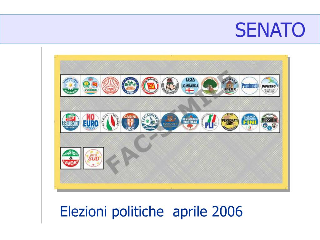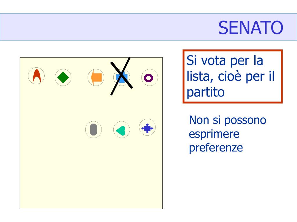 SENATO Si vota per la lista, cioè per il partito Non si possono esprimere preferenze