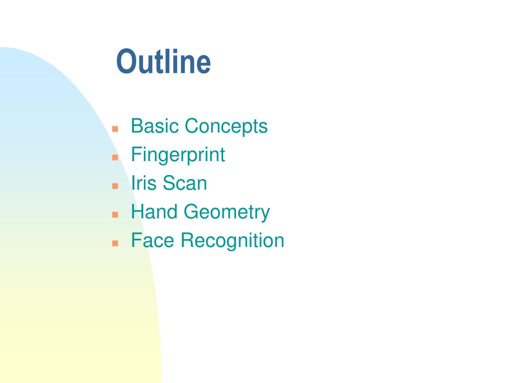 Outline • Basic Concepts • Fingerprint • Iris Scan • Hand Geometry • Face Recognition