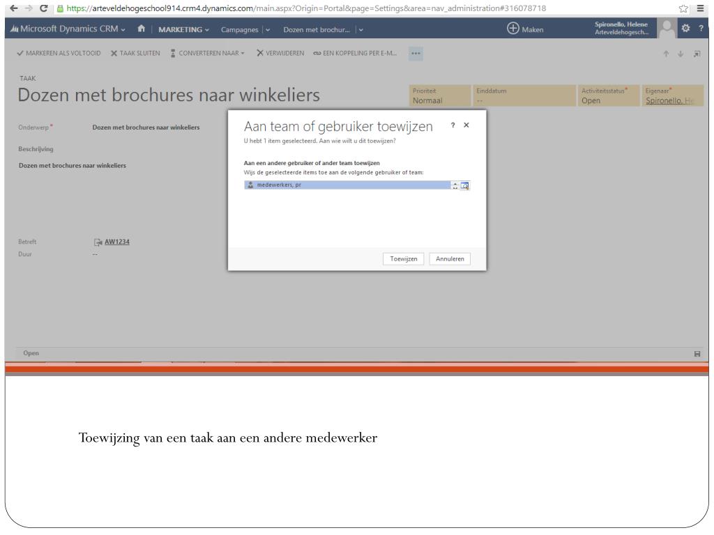 Klik op activiteit en dan taaktoevoegen. Nu moet u de veldeninvullen