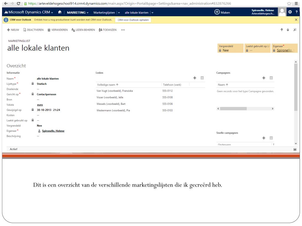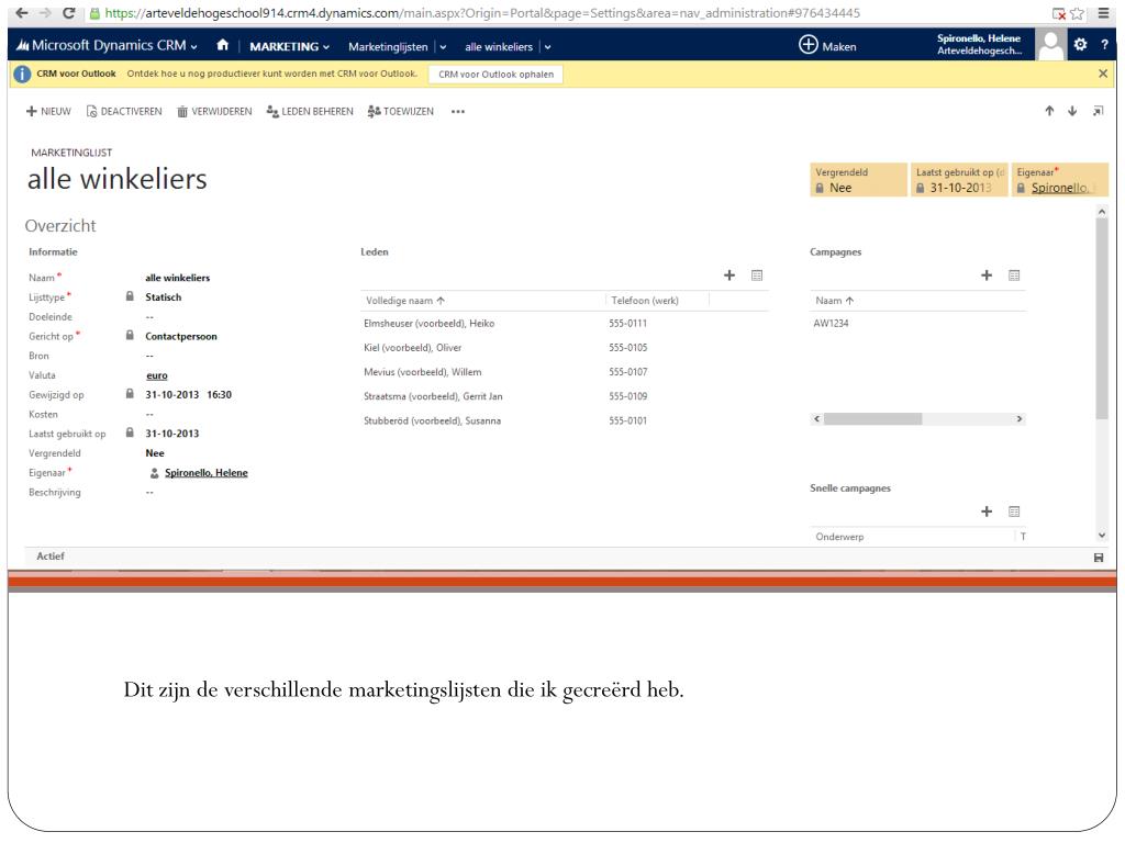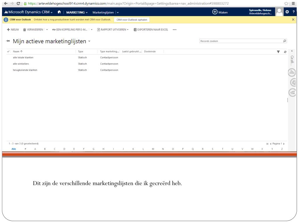 Dit zijn de verschillendemarketingslijsten die ikgecreërdheb.