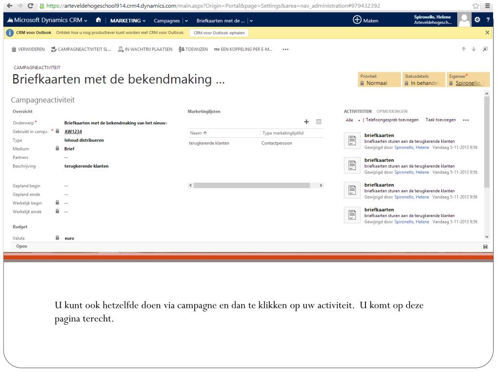 U kuntookhetzelfdedoen via campagne en dan te klikken op uwactiviteit. U komt op deze pagina terecht.