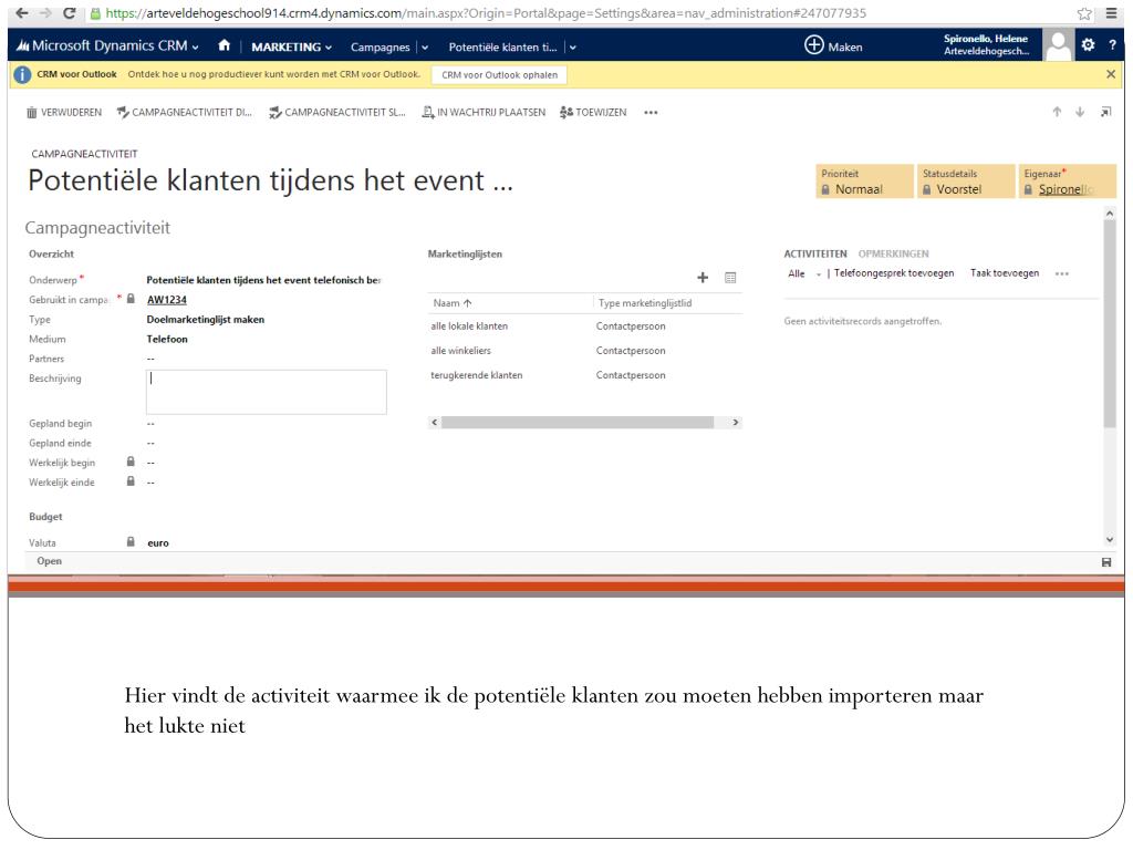 Hier vindt de activiteitwaarmeeik de potentiëleklanten zou moetenhebbenimporteren maar hetlukte niet