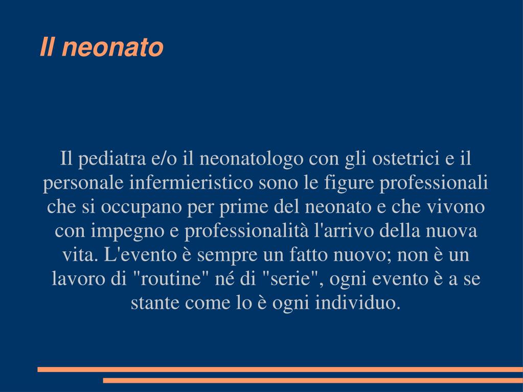 Il pediatra e/o il neonatologo con gli ostetrici e il personale infermieristico sono le figure professionali che si occupano per prime del neonato e che vivono con impegno e professionalità l'arrivo della nuova vita. L'evento è sempre un fatto nuovo; non è un lavoro di "routine" né di "serie", ogni evento è a se stante come lo è ogni individuo. Il neonato