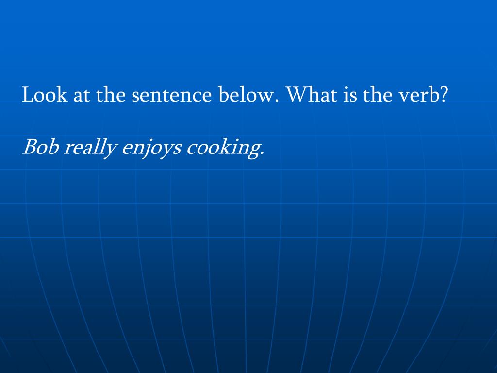 Look at the sentence below. What is the verb? Bob really enjoys cooking.