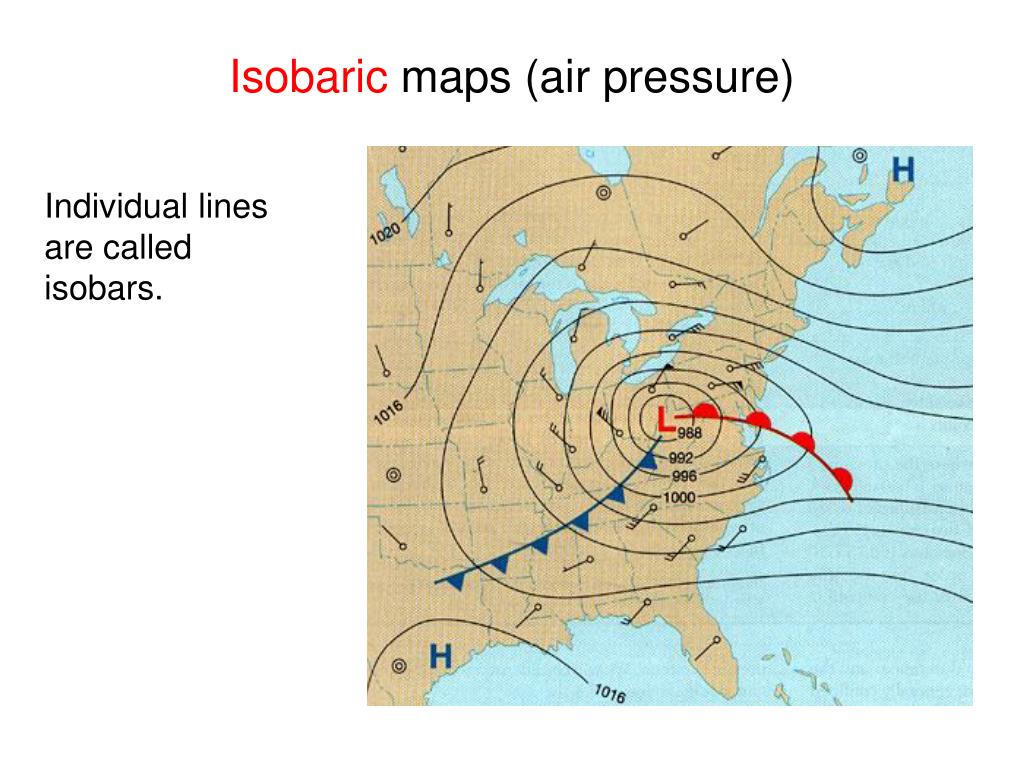 Isobaric maps (air pressure) Individual lines are called isobars.
