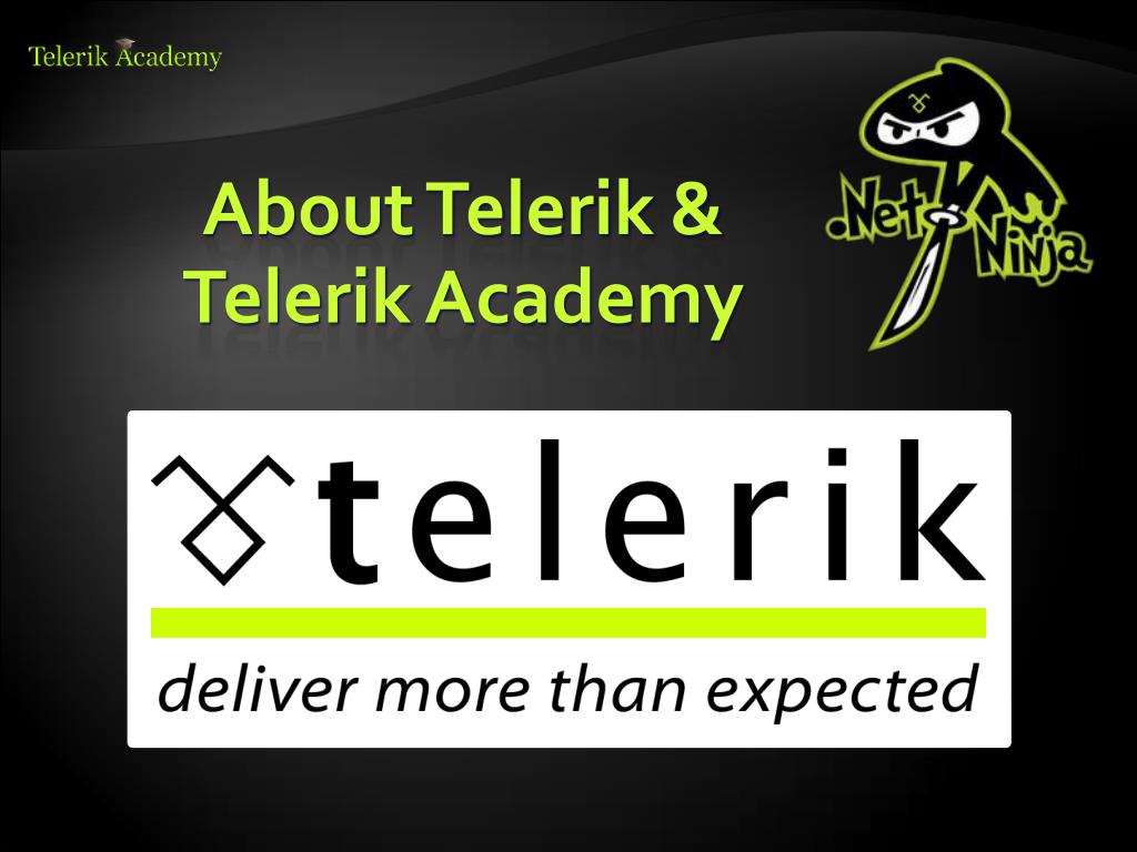 About Telerik • What Telerik does? • Leading vendor of ASP.NET AJAX, Silverlight, WPF, Window Phone 7 and ASP.NET MVC components, ORM, Reporting, and CMS solutions and Visual Studio plugins • Headquartered in Bulgaria • With offices in USA, Germany, Australia, India • More than 500 employees – mostly developers • Employer #1 in Bulgaria for 2010 • Microsoft Gold Certified Partner