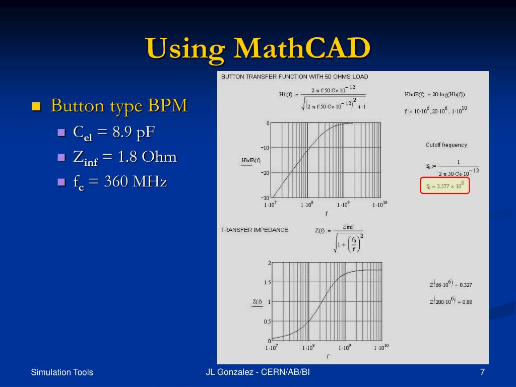 Using MathCAD • HF - Button type BPM JL Gonzalez - CERN/AB/BI