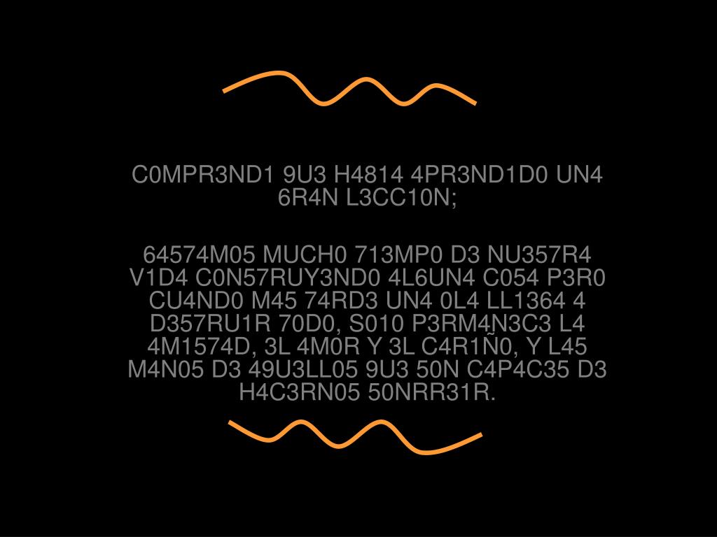 C0MPR3ND1 9U3 H4814 4PR3ND1D0 UN4 6R4N L3CC10N; • 64574M05 MUCH0 713MP0 D3 NU357R4 V1D4 C0N57RUY3ND0 4L6UN4 C054 P3R0 CU4ND0 M45 74RD3 UN4 0L4 LL1364 4 D357RU1R 70D0, S010 P3RM4N3C3 L4 4M1574D, 3L 4M0R Y 3L C4R1Ñ0, Y L45 M4N05 D3 49U3LL05 9U3 50N C4P4C35 D3 H4C3RN05 50NRR31R.