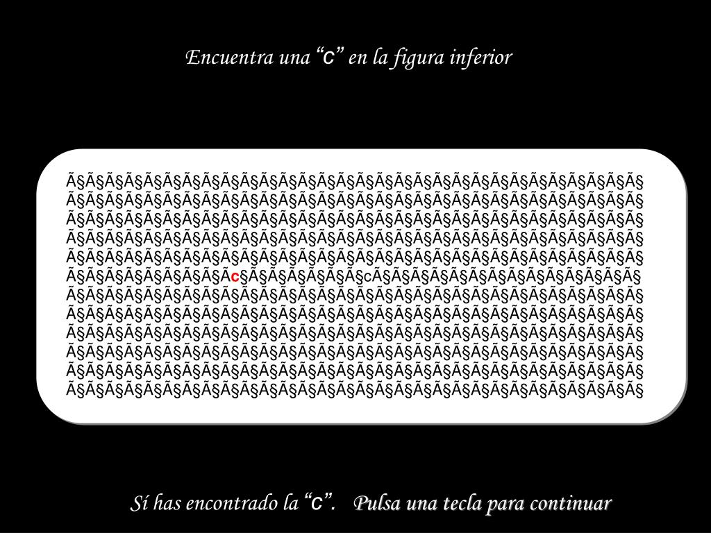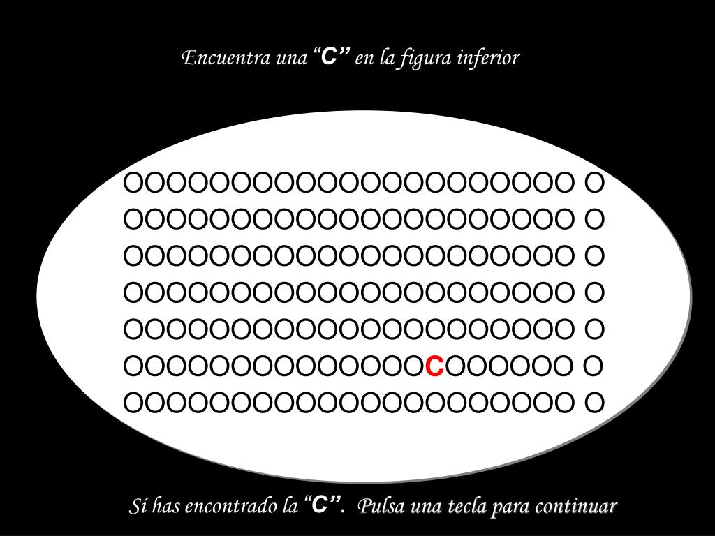 Encuentra una “C” en la figura inferior • OOOOOOOOOOOOOOOOOOOOO O • OOOOOOOOOOOOOOOOOOOOO O • OOOOOOOOOOOOOOOOOOOOO O • OOOOOOOOOOOOOOOOOOOOO O • OOOOOOOOOOOOOOOOOOOOO O • OOOOOOOOOOOOOOCOOOOOO O • OOOOOOOOOOOOOOOOOOOOO O Sí has encontrado la “C”.Pulsa una tecla para continuar