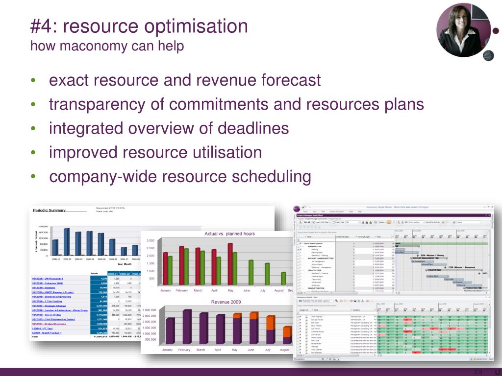 #4: resource optimisationhow maconomy can help • exact resource and revenue forecast • transparency of commitments and resources plans • integrated overview of deadlines • improved resource utilisation • company-wide resource scheduling 2.8