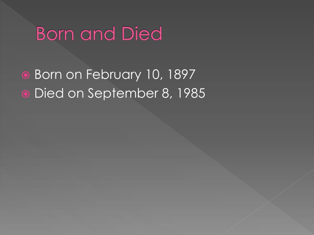 Born and Died • Born on February 10, 1897 • Died on September 8, 1985