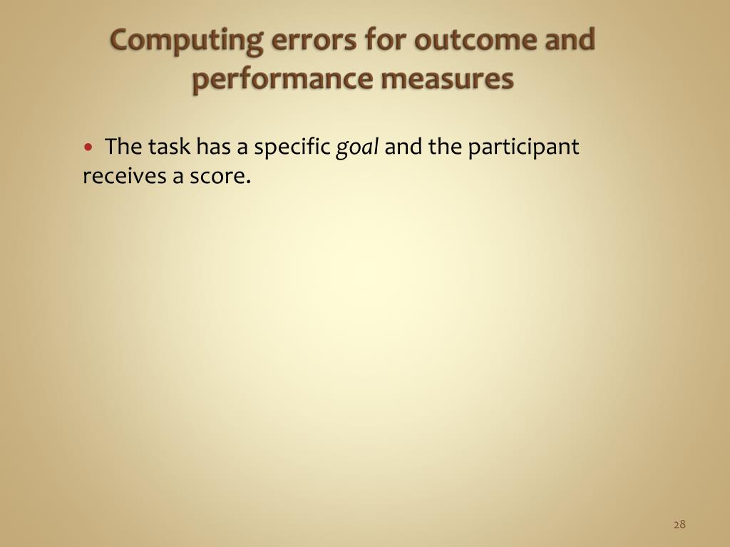 Computing errors for outcome and performance measures The task has a specific goal and the participant receives a score.
