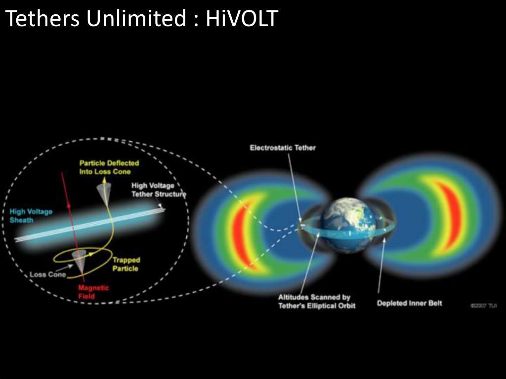 References • Odenwald, Sten. "What Are Space Radiation Effects?" NASA. <http://radbelts.gsfc.nasa.gov/outreach/effects.html>. • Hess, Wilmot N. "Energetic Particles in the Inner Van Allen Belt." Space Science Reviews 1.2 (1962). <http://rd.springer.com/article/10.1007%2FBF00240580> • Hoyt, Robert P., and Forward, Robert L. "Radiation Remediation." Tethers Unlimited. <http://www.tethers.com/HiVOLT.html>. • Chang, Ouliang. "Numerical Simulation of Ion-Cyclotron Turbulence Generated by Artificial Plasma Cloud Release." Thesis. Virginia Tech, 2009. <http://scholar.lib.vt.edu/theses/available/etd-07152009-125531/>.
