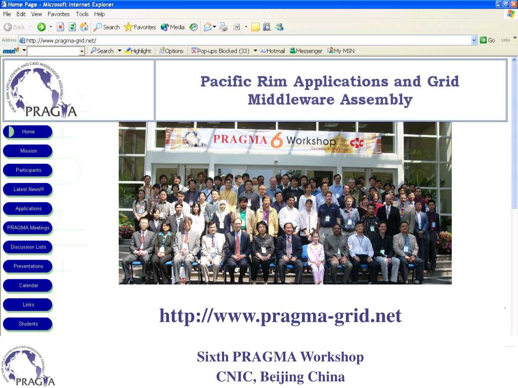 http://www.pragma-grid.net Sixth PRAGMA Workshop CNIC, Beijing China