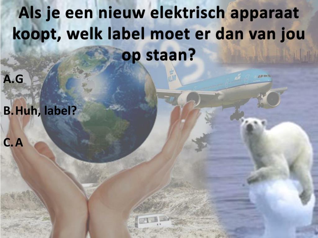 Als je een nieuw elektrisch apparaat koopt, welk label moet er dan van jou op staan? • G • Huh, label? • A