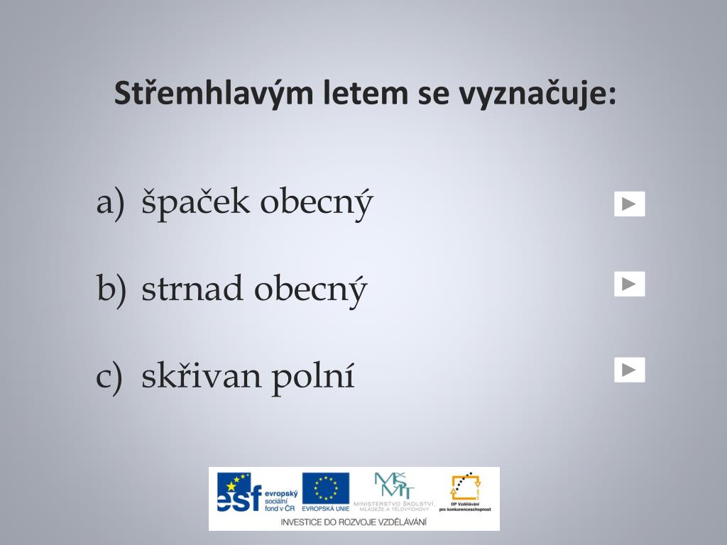Střemhlavým letem se vyznačuje: špaček obecný strnad obecný skřivan polní