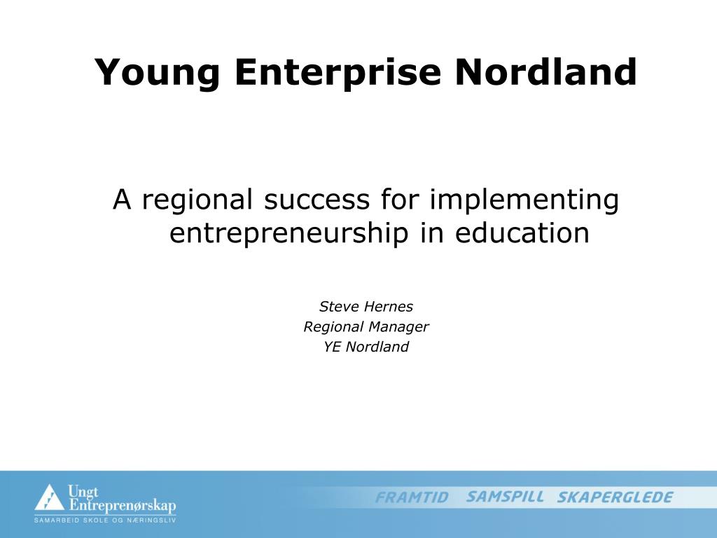 Young Enterprise Nordland A regional success for implementing entrepreneurship in education Steve Hernes Regional Manager YE Nordland