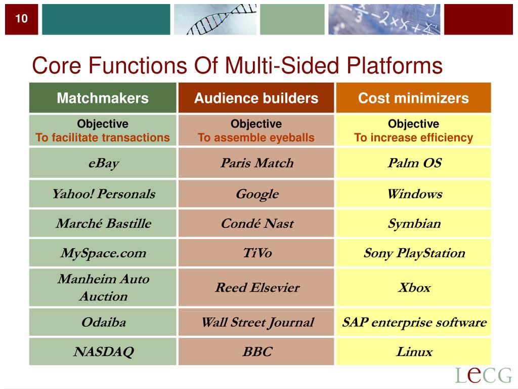 What Makes A Platform Multi-Sided Reduces transactions costs between two or more groups of economic agents ► Significant indirect network effects between groups ► ► Uses pricing, design, and openness to optimize positive feedback effects