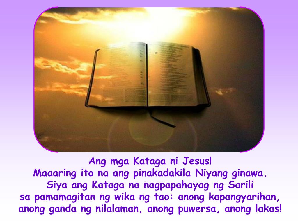 Ang mga Kataga ni Jesus! Maaaring ito na ang pinakadakila Niyang ginawa. Siya ang Kataga na nagpapahayag ng Sarili sa pamamagitan ng wika ng tao: anong kapangyarihan, anong ganda ng nilalaman, anong puwersa, anong lakas!