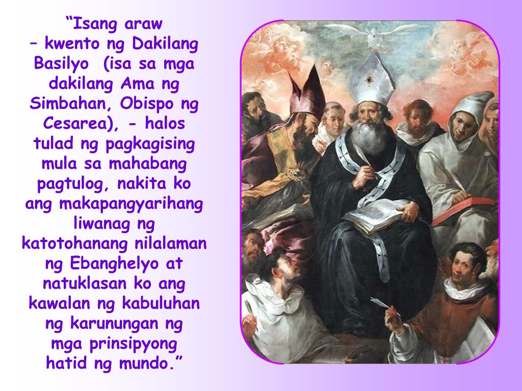“Isang araw – kwento ng Dakilang Basilyo (isa sa mga dakilang Ama ng Simbahan, Obispo ng Cesarea), - halos tulad ng pagkagising mula sa mahabang pagtulog, nakita ko ang makapangyarihang liwanag ng katotohanang nilalaman ng Ebanghelyo at natuklasan ko ang kawalan ng kabuluhan ng karunungan ng mga prinsipyong hatid ng mundo.”