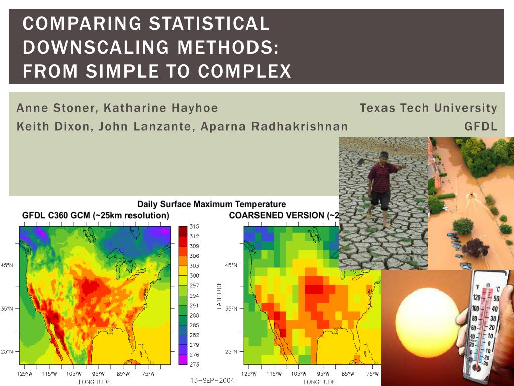 Comparing statistical downscaling methods: From simple to complex. Anne Stoner, Katharine Hayhoe Texas Tech University Keith Dixon, John Lanzante , Aparna Radhakrishnan GFDL. approach. Goal: Evaluate and compare multiple statistical downscaling methods using the same framework