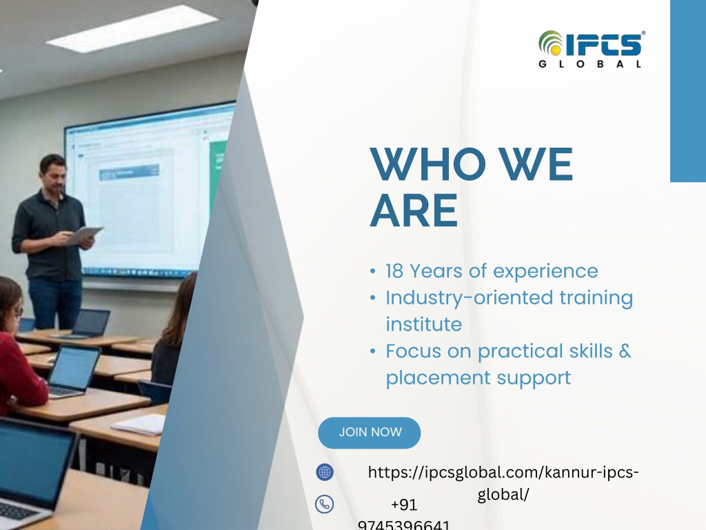 2. https://ipcsglobal.com/kannur-ipcs-global/ JOIN NOW +91 9745396641 WHO WE ARE • 18 Years of experience • Industry-oriented training institute • Focus on practical skills & placement support