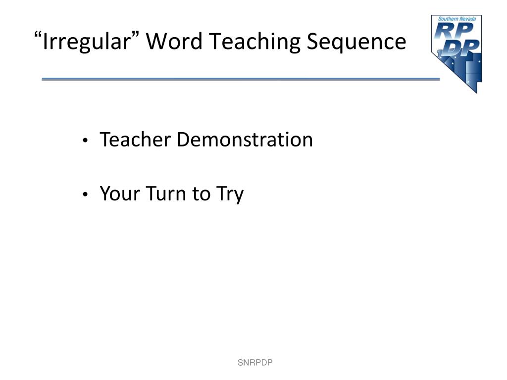 “Irregular” Word Teaching Sequence • Teacher Demonstration • Your Turn to Try SNRPDP