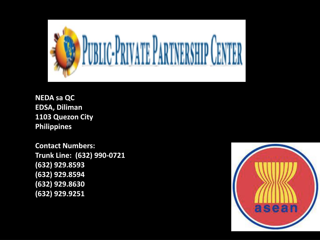 PPP FOCAL POINTS IN ASEAN PPP CENTER PHILIPPINES PPP UNIT MALAYSIA BAPPENAS- INDONESIA STATE ENT. POLICY OFFICE-THAILAND MINISTRY OF PLANNING- VIETNAM -SINGAPORE