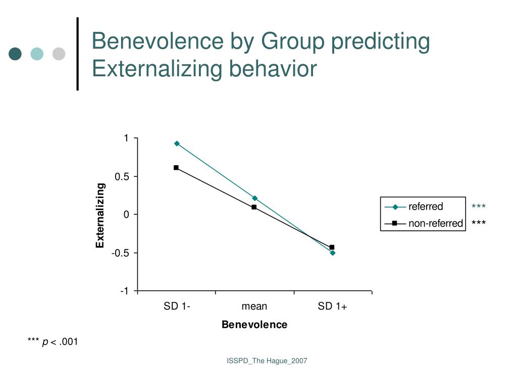 Benevolence by Group predicting Externalizing behavior *** *** *** p < .001 ISSPD_The Hague_2007