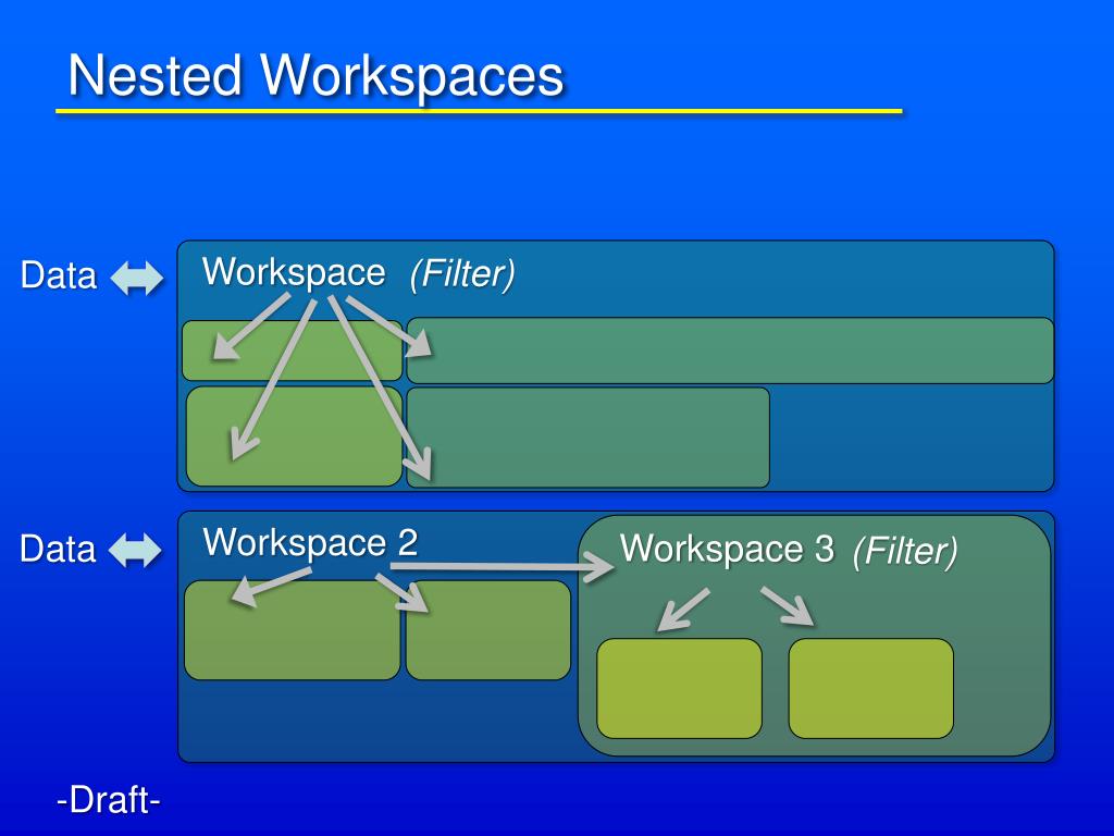 Nested Workspaces Workspace (Filter) Data Workspace 2 Workspace 3 Data (Filter)