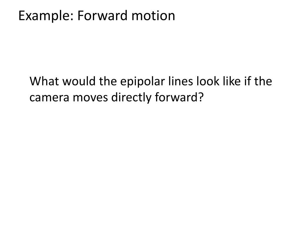 Example: Forward motion What would the epipolar lines look like if the camera moves directly forward?