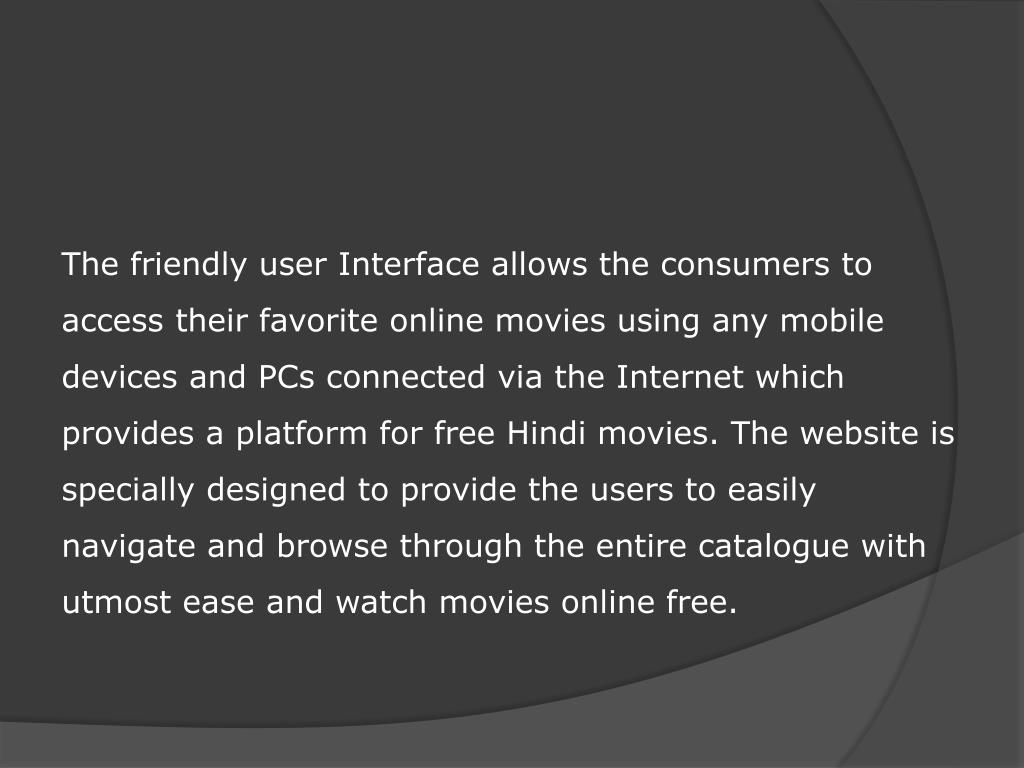 The friendly user Interface allows the consumers to access their favorite online movies using any mobile devices and PCs connected via the Internet which provides a platform for free Hindi movies. The website is specially designed to provide the users to easily navigate and browse through the entire catalogue with utmost ease and watch movies online free.