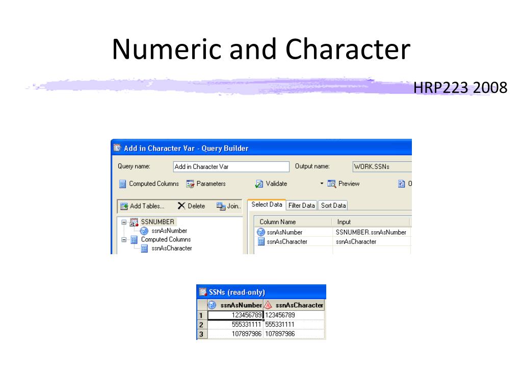 HRP 223 – 2008 Topic 3 – Manipulating Data with SQL and EG