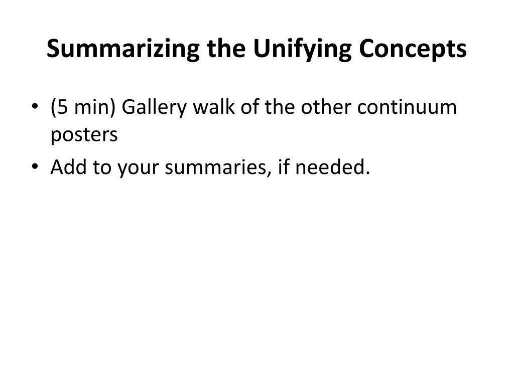 Summarizing the Unifying Concepts • (5 min) Gallery walk of the other continuum posters • Add to your summaries, if needed.