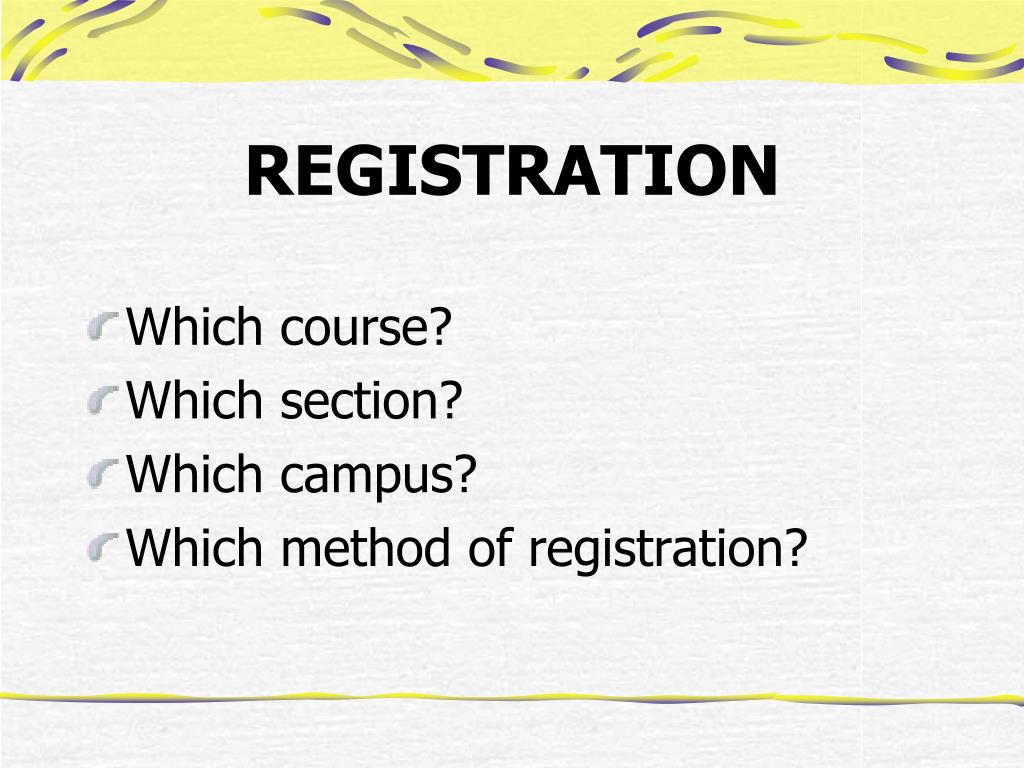 REGISTRATION • Which course? • Which section? • Which campus? • Which method of registration?