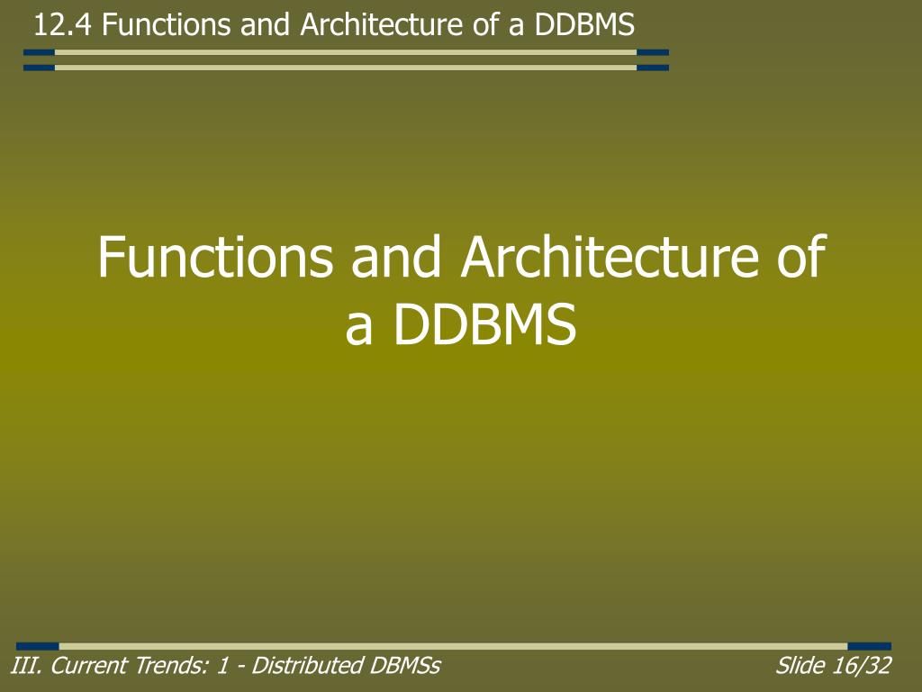 12.4 Functions and Architecture of a DDBMS Functions and Architecture of a DDBMS