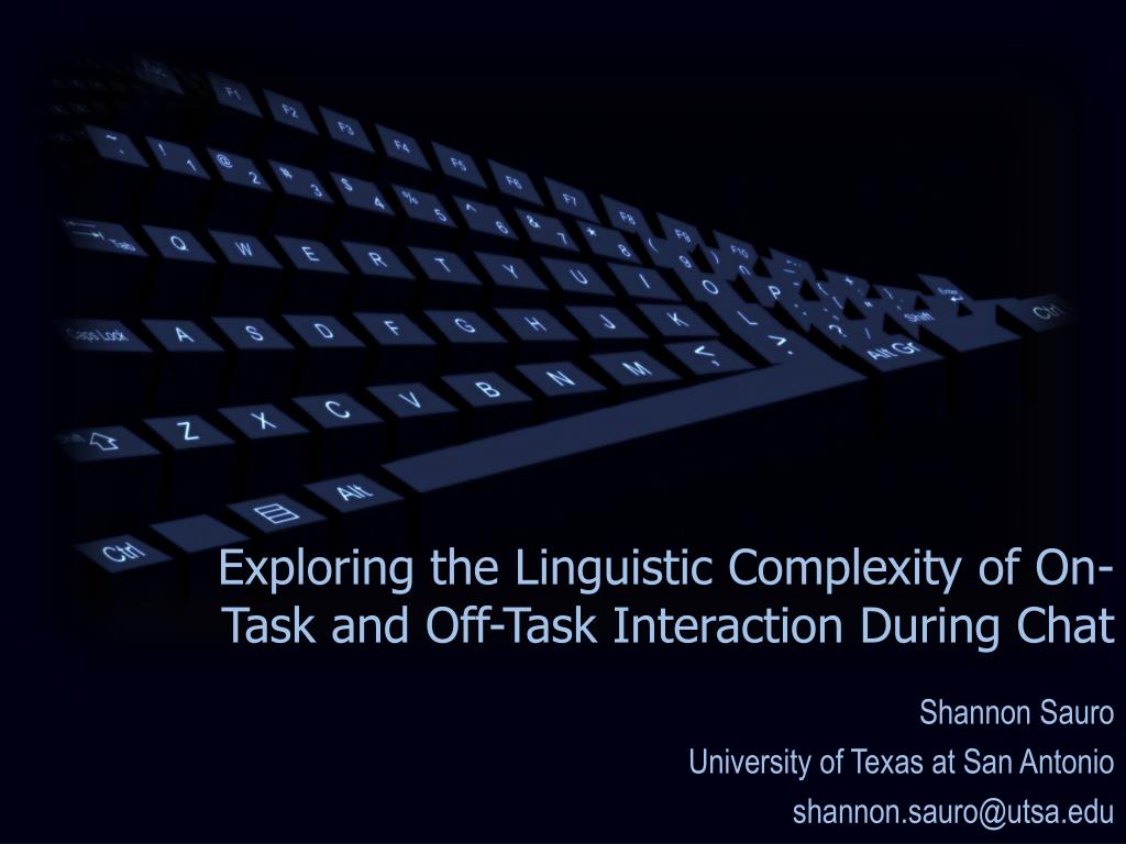 Exploring the Linguistic Complexity of On-Task and Off-Task Interaction During Chat Shannon Sauro University of Texas at San Antonio shannon.sauro@utsa.edu