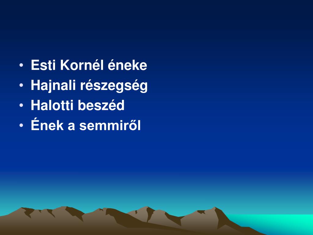 Esti Kornél éneke • Hajnali részegség • Halotti beszéd • Ének a semmiről
