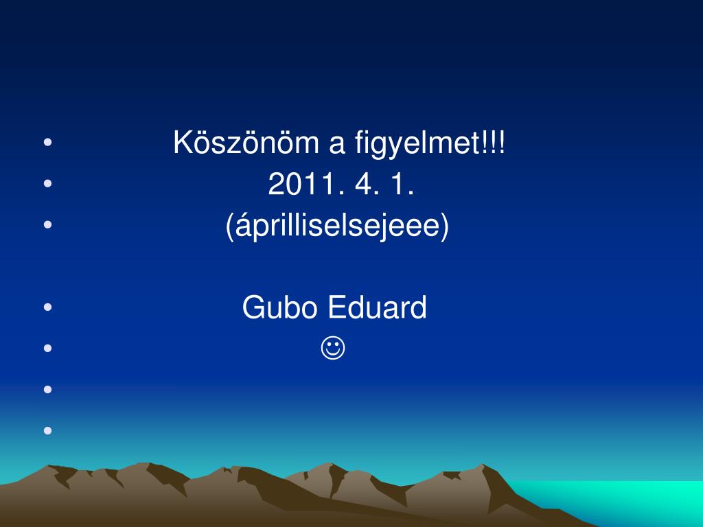 Köszönöm a figyelmet!!! • 2011. 4. 1. • (áprilliselsejeee) • Gubo Eduard •