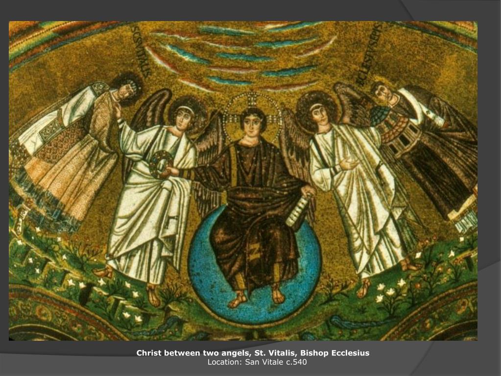 Christ between two angels, St. Vitalis, Bishop Ecclesius Location: San Vitale c.540