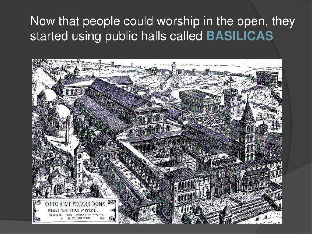 Now that people could worship in the open, they started using public halls called BASILICAS