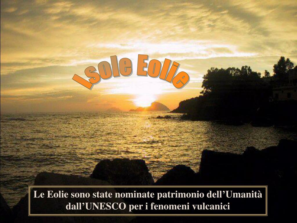 Isole Eolie Le Eolie sono state nominate patrimonio dell’Umanità dall’UNESCO per i fenomeni vulcanici