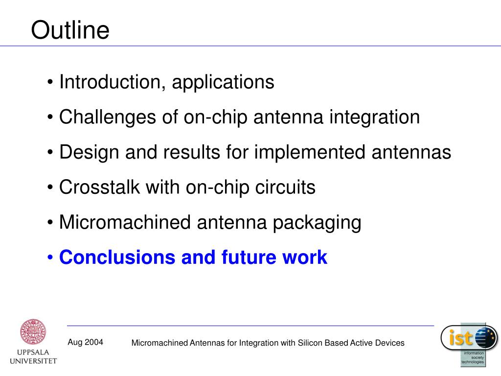 Outline • Introduction, applications • Challenges of on-chip antenna integration • Design and results for implemented antennas • Crosstalk with on-chip circuits • Micromachined antenna packaging • Conclusions and future work Micromachined Antennas for Integration with Silicon Based Active Devices