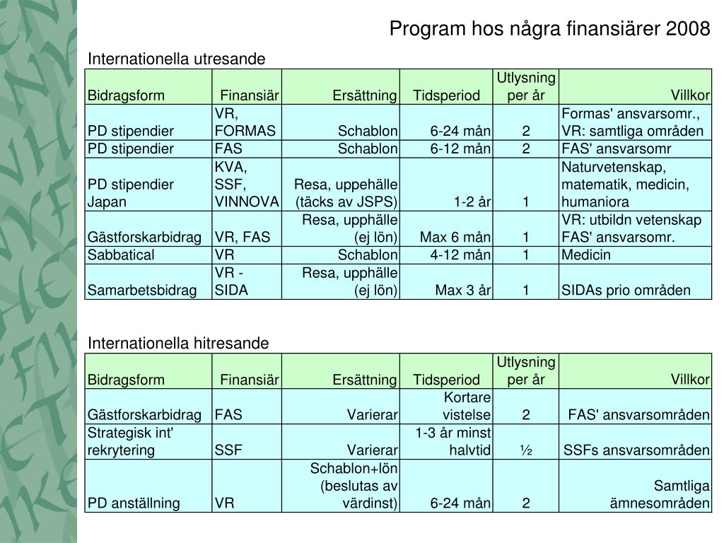 Svenska forskningsfinansiärers mobilitetsprogram Lars M Nilsson Vetenskapsrådet Omvärldsanalys