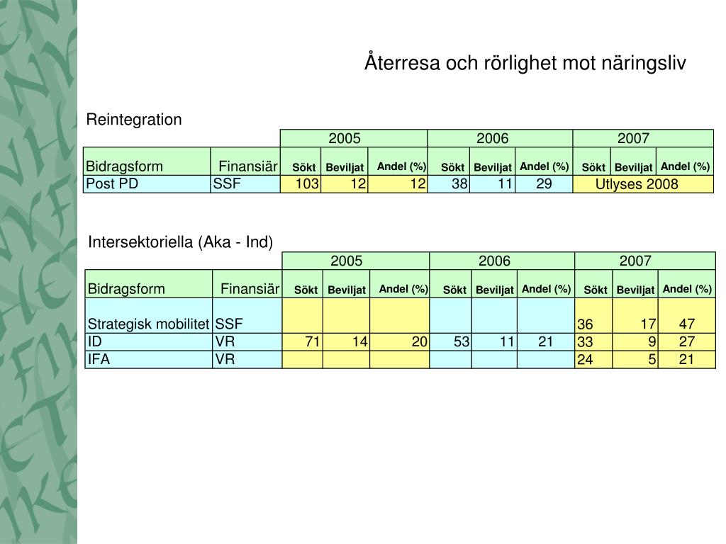 Göran Melin (2003) framhåller vidare fördelarna • med postdoc-vistelsen: • Ökad kommunikation (nätverk) • Ökad kompetens • Personlig mognad • Men också osäkerheten vid hemkomsten… • Alltså rörligheten ökar • men är fortfarande begränsad, särskilt ”över gränsen”