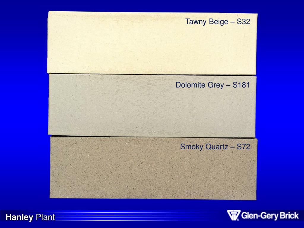 Tawny Beige – S32 Dolomite Grey – S181 Smoky Quartz – S72 Hanley Plant
