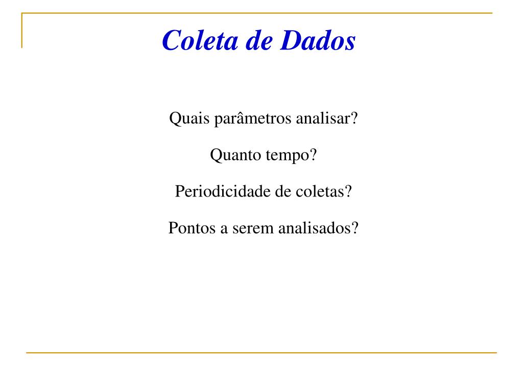 Coleta de Dados Quais parâmetros analisar? Quanto tempo? Periodicidade de coletas? Pontos a serem analisados?