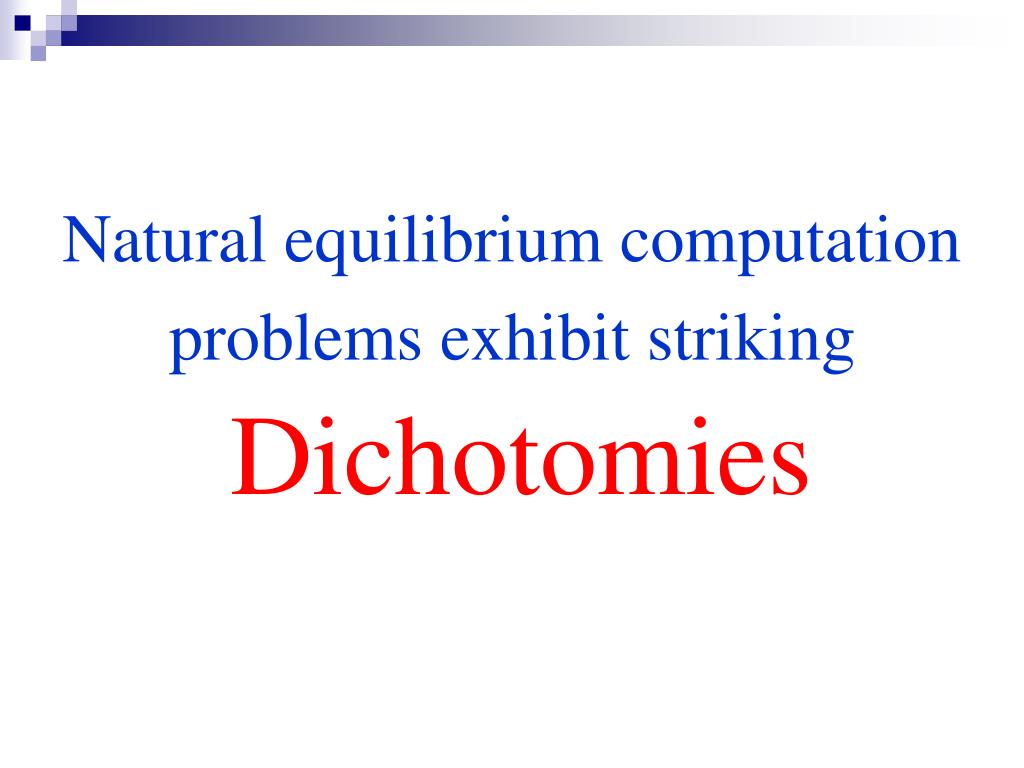 Dichotomies Natural equilibrium computation problems exhibit striking
