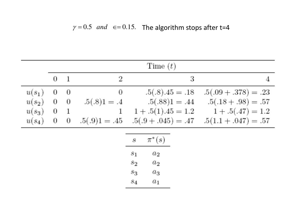 Value Iteration Solution • Set values of u(s) to random numbers • Use Bellman update equation • Converge and stop using this equation when where max utility change