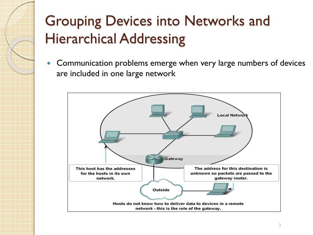 Grouping Devices into Networks and Hierarchical Addressing • Communication problems emerge when very large numbers of devices are included in one large network